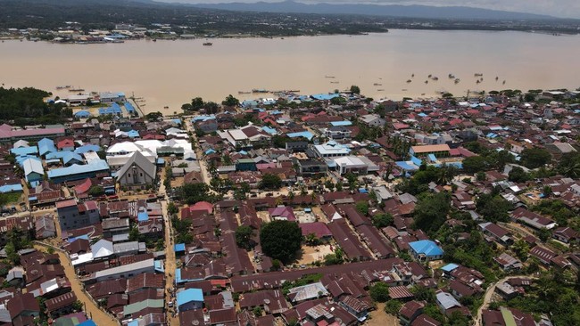 Kendari - Banjir bandang menerjang Kendari, Sulawesi Tenggara. Banjir itu akibat luapan Kali Lasolo.