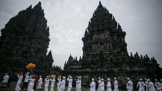 Sleman - Jelang Nyepi, prosesi Tawur Agung Kesanga digelar di Candi Prambanan, Sleman, Yogyakarta. Ritual ini merupakan salah satu dari rangkaian Nyepi.