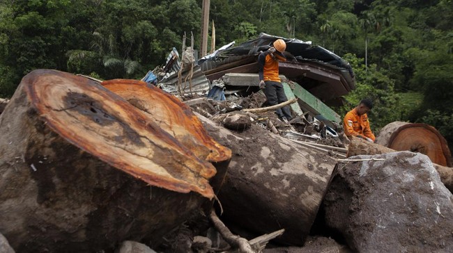 Sumatera Barat - Banjir dan longsor melanda Pesisir Selatan, Sumatera Barat. Korban hilang kini masih dalam pencarian.