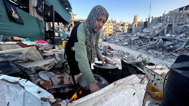 Potret Pilu Warga Gaza Berbuka Puasa di Antara Puing-puing Bangunan