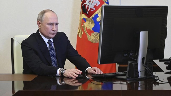 Putin menggunakan hak suaranya dalam pilpres secara online dari Kremlin atau kantor kepresidenan pada Jumat (15/3/2024) waktu setempat.