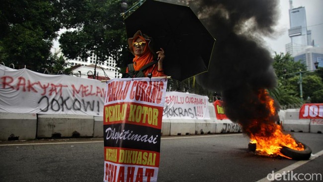 Aksi Bakar Ban Warnai Unjuk Rasa Tuntut KPU Jujur dan Adil