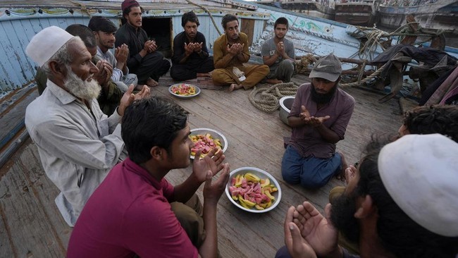 Momen Kebersamaan Nelayan Pakistan Buka Puasa di Atas Kapal