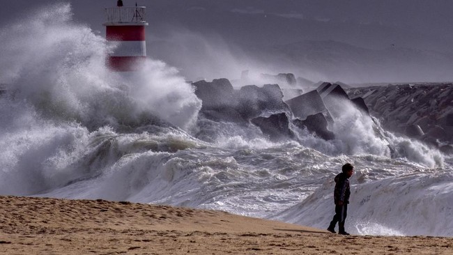 Penampakan Ombak Besar Terjang Pantai di Portugal