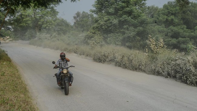 Cilegon - Jalan yang menjadi jalur utama untuk pemudik motor menuju pelabuhan Ciwandan tersebut dipenuhi pasir. Ini potretnya.