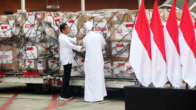 Jakarta - Presiden Joko Widodo melepas bantuan untuk Palestina dan Sudan. Bantuan ini untuk penanganan bencana kedua negara tersebut