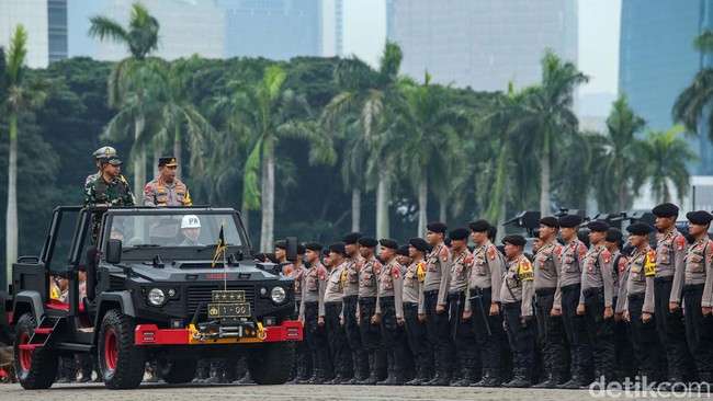 Jakarta - Apel gelar pasukan Operasi Ketupat 2024 dilakukan di Monas, Jakarta, Rabu (3/4/2024). Apel ini untuk kesiapan pengamanan mudik Lebaran.