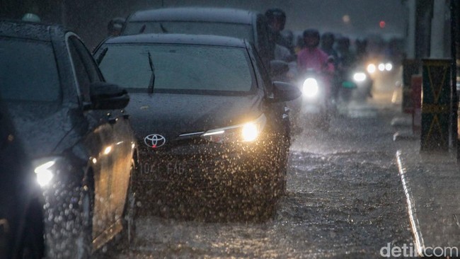 Jakarta - Jalan Wijaya 1 dan Jalan Prapanca, Jaksel, juga tergenang sore ini. Lalin terpantau macet.