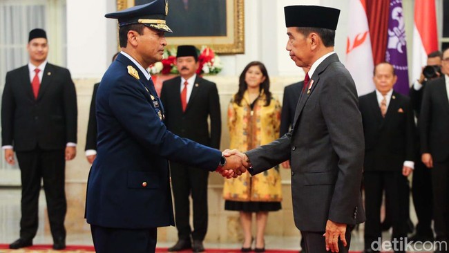 Jakarta - Presiden Jokowi melantik Marsdya Tonny Harjono sebagai Kepala Staf Angkatan Udara. Marsdya Tonny Harjono menggantikan Marsekal Fadjar Prasetyo yang akan pensiun