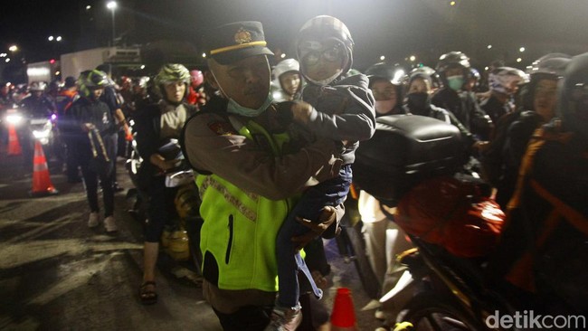 Momen Petugas Bantu Pemudik Balita Masuk Kapal