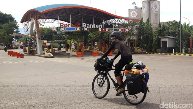 Banten - Mudik tidak hanya dilakukan menggunakan mobil dan motor. Veri Sanovri, pemudik asal Serpong memilih mudik dengan sepeda meski tujuannya jauh yakni Palembang.