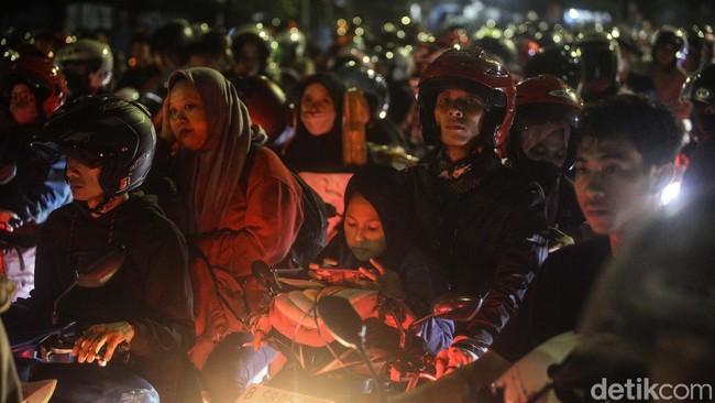 Banten - Para pemudik motor membawa serta penumpang anak kecil hingga balita di Pelabuhan Ciwandan, Banten. Begini potret para anak kecil melawan rasa lelah.