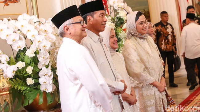 Jakarta - Presiden Jokowi menggelar open house Idulfitri di Istana. Para menteri turut jalan kaki dan mengantre bareng masyarakat untuk bersalaman dengan Presiden Jokowi.