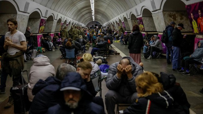 Berlindung dari Serangan Rusia, Warga Ukraina Ngungsi ke Stasiun Bawah Tanah
