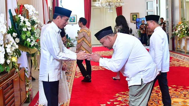 Jakarta - Wakil Menteri Ketenagakerjaan Afriansyah Noor menghadiri acara open house Idul Fitri 1445 Hijriah yang digelar Presiden Joko Widodo di Istana Negara, Jakarta.