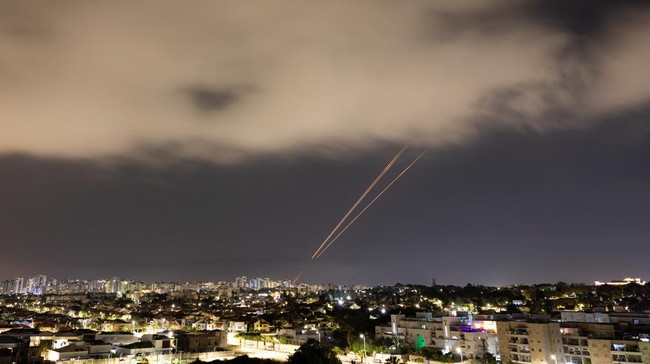 Israel - Serangan udara Iran tampak di langit Israel. Sirene dan ledakan terdengar di Tel Aviv hingga Yerusalem.