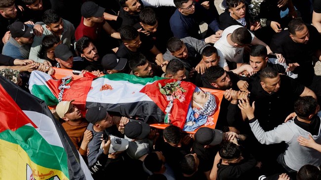 Nablus - Jenazah Yazan Ishtayeh, warga Nablus, Tepi Barat, Palestina, yang dibunuh Israel dimakamkan. Isak tangis mengiringi pemakaman pemuda tersebut.