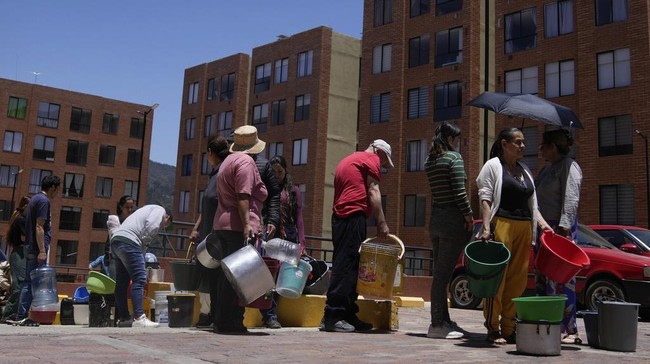 Bogota - Kolombia mengalami kekeringan akibat El Nino. Akibatnya warga berburu dan antre untuk mengambil air bersih.