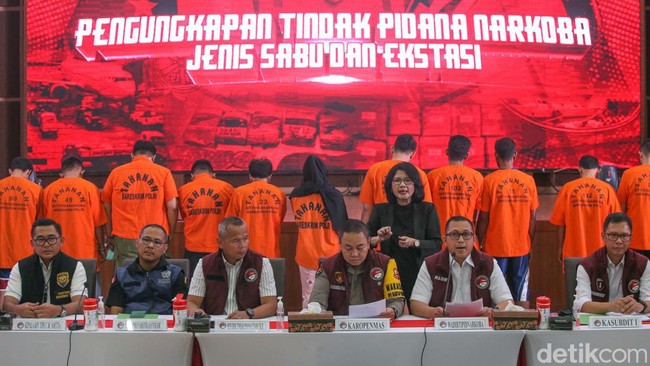 Jakarta - Bareskrim Polri berhasil mengungkap 2 kasus kejahatan Narkotika. 12 Tersangka diamankan.
