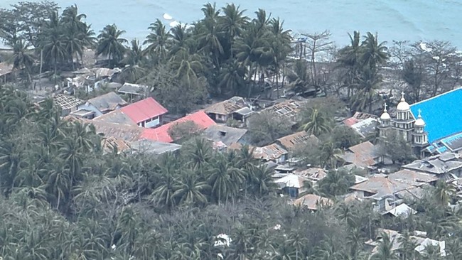 Pemandangan udara dari area yang terkena dampak setelah gunung berapi Ruang meletus beberapa kali, memuntahkan awan lava dan abu ke langit di Sulawesi Utara, Indonesia pada 19 April 2024.