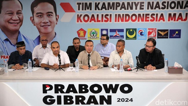 Jakarta - TKN Prabowo-Gibran gelar jumpa pers di Sekber Prabowo Gibran, Jakarta. TKN Prabowo Gibran larang pendukungnya gelar aksi saat pembacan putusan sengketa pilpres.