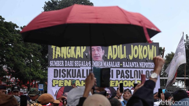 Jakarta - Massa aksi pendukung 01 dan 03 masih bertahan di kawasan Patung Kuda, Jakarta, sambil menunggu keputusan sidang sengketa Pilpres 2024.