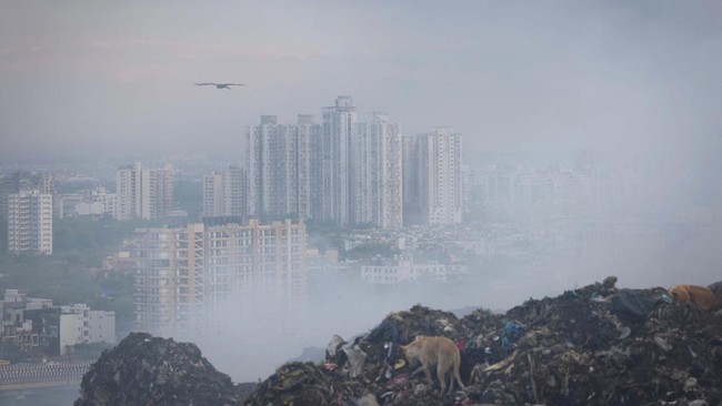 New Delhi - Kota New Delhi, India, tertutup asap. Asap itu disebabkan kebakaran TPA Ghazipur, di New Delhi.