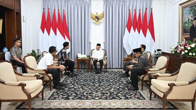 Jakarta - Gibran Rakabuming Raka bersilaturahmi ke Wakil Presiden RI Ma'ruf Amin usai ditetapkan sebagai wakil presiden terpilih 2024-2029.