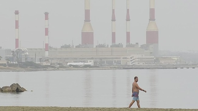 Siprus - Kota pesisir Larnaca, Siprus, diselimuti debu yang terbawa angin. Kabut debu membuat jarak pandang di kota itu terbatas.