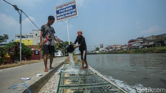 Aktivitas Warga Karawang Mencuci Baju hingga Sajadah Masjid di Sungai