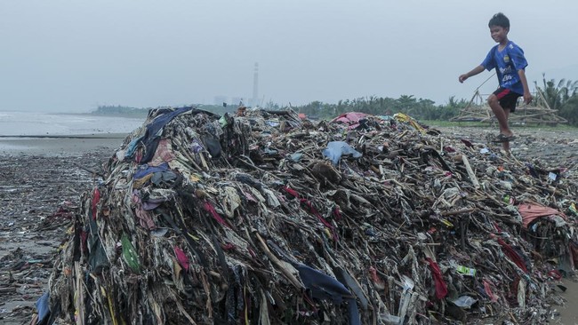 Jakarta - Sudah seminggu sampah menumpuk di Pantai Cibutun Loji, Desa Sangrawayang, Simpenan, Kabupaten Sukabumi, Jawa Barat. Sampah ini terbawa arus laut.