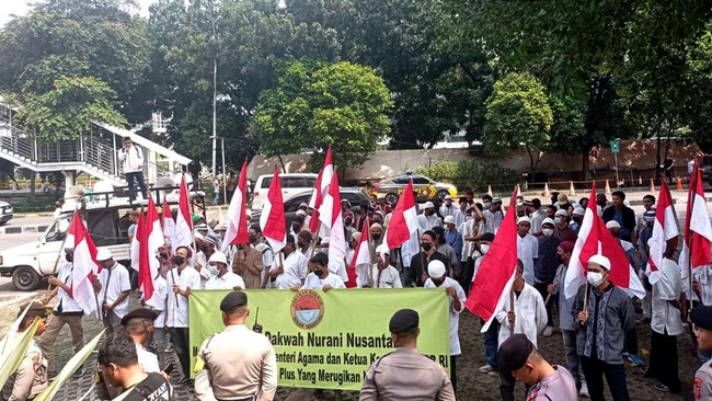 Jakarta - Ratusan massa yang menamakan DPP Gerakan Dakwah Nurani Nusantara (GDNNusa) beraksi di depan Komisi Pemberantasan Korupsi (KPK) RI menyuarakan soal haji. Kenapa?