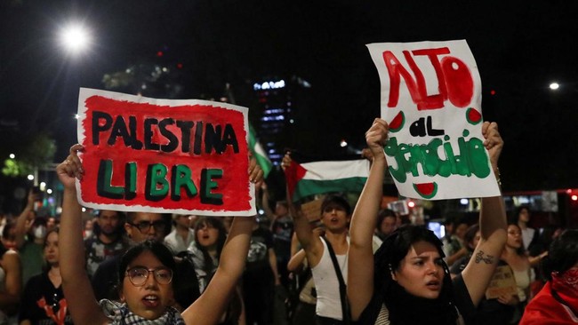 Meksiko - Aksi unjuk rasa mendukung Palestina kembali terjadi di Mexico City, Meksiko, 28 Mei 2024. Mereka memprotes genosida Israel di Gaza.