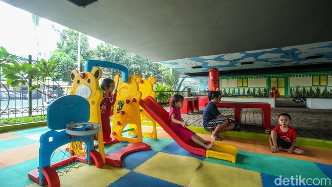 Jakarta - Kolong Fly Over di Balimester, Jakarta, disulap menjadi taman bermain untuk anak-anak. Begini penampakannya.
