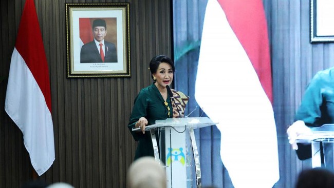 Jakarta - Kowani menggelar talkshow dan parade kebaya di Kemen PPPA, Jakarta, Kamis (30/5/2024). Ketum Kowani Giwo Rubianto Wiyogo hadir dalam acara tersebut.