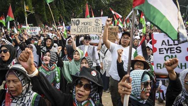 Massa Kembali Gelar Aksi Bela Palestina All Eyes On Rafah di Kedubes AS