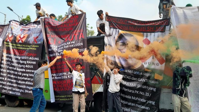 Jakarta - Ratusan perwakilan karyawan PT Polo Ralph Lauren Indonesia kembali mendatangi Gedung Mahkamah Agung (MA). Mereka menuntut keadilan.