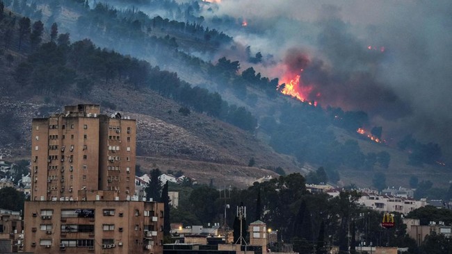 Israel - Kebakaran hutan yang merembet ke pemukiman terjadi di Kiryat Shmona, Israel. Kebakaran itu dipicu serangan yang diluncurkan Hizbullah dari Lebanon.