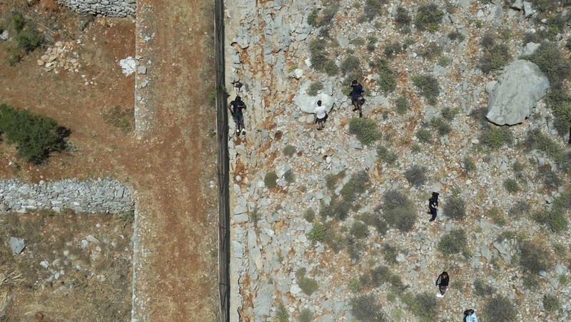 Jenazah presenter TV Inggris Michael Mosley yang hilang tergeletak di kawasan berbatu di pulau Symi, Yunani, Minggu (9/6/2024). (AP Photo/Panormitis Chatzigiannakis)