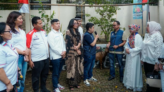 Ketua Umum KADIN DKI Jakarta, Diana Dewi, Ketua Kadin Jakarta Timur Anta Ginting, Ketua Dewan Pertimbangan KADIN Jakarta Timur, Gerrit Alexander, Ketua Panitia Pelaksana Iqnal Shalat Sukma Wibowo dan pengurus Kadin Jaktim melaksanakan pemotongan dan distribusi hewan qurban pada Hari Raya Idul Adha tahun 1445 Hijriah di kantor sekretariat Kadin Jaktim, Selasa (18/6/2024).