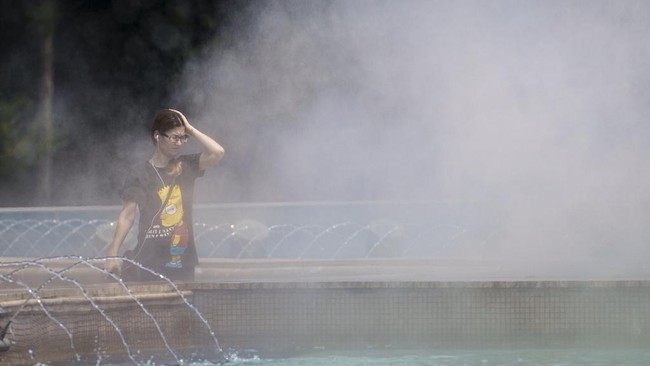 Warga Rumania Ngadem di Air Mancur Saat Suhu Capai 36 Derajat Celcius