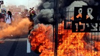 Di Tel Aviv, pengunjuk rasa menempatkan benda seperti sangkar logam di jalan utama menuju kota dan menyalakan api, sehingga menyebabkan kemacetan lalu lintas bagi sejumlah kendaraan. REUTERS/Tomer Appelbaum