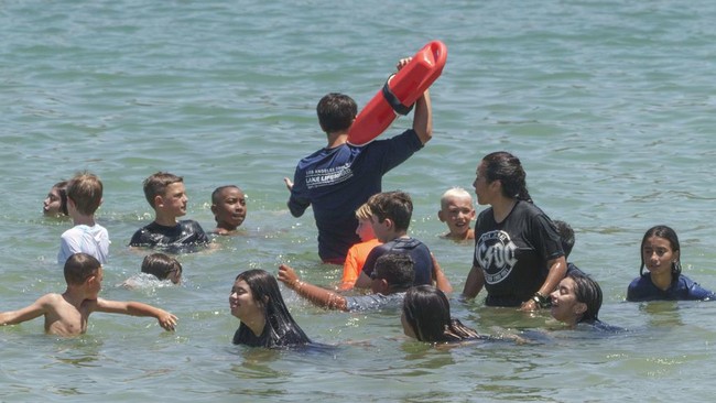 California - California tengah dilanda gelombang panas. Sebagian warga pun mendinginkan badan dengan cara berenang di danau.