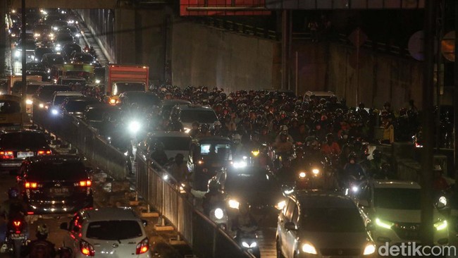 Jakarta - Kemacetan panjang terjadi di jalan Jenderal Basuki Rachmat, Jakarta. Kemacetan ini terjadi usai tawuran warga di Pasar Gembrong, Jakarta.