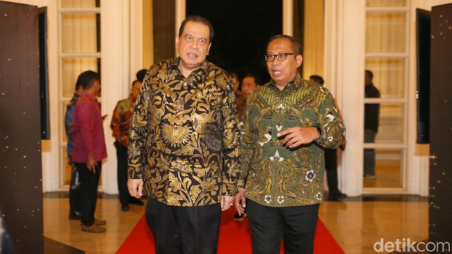 Malam puncak Hoegeng Awards 2024 digelar di The Tribrata Darmawangsa, Jakarta Selatan, pada Jumat (12/7/2024). Setiba di lokasi, Chairul Tanjung (CT) langsung masuk ke gedung acara.