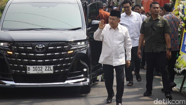 Sejumlah pejabat dan tokoh tiba di rumah duka Wapres ke-9 Hamzah Haz, di Jl Tegalan, Matraman, Jakarta Timur, Rabu (24/7/2024). Terlihat hadir Wakil Presiden RI ke-10 dan 12 Jusuf Kalla (JK).