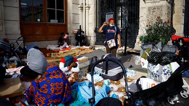 Paris - Menjelang Olimpiade Paris 2024, sejumlah keluarga tunawisma menggelar perkemahan di depan balai kota distrik ke-18 di Paris, Prancis. Ini foto-fotonya.