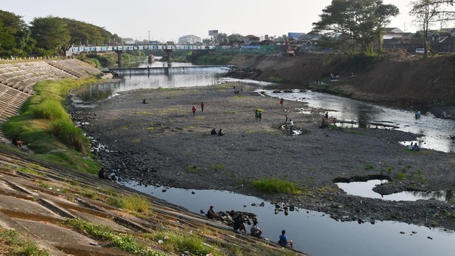 Madiun - Musim kemarau bikin Sungai di Madiun sejak sebulan terakhir airnya terus menyusut dan mengering. Dasar sungai pun kini muncul ke permukaan. Begini penampakannya
