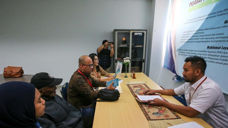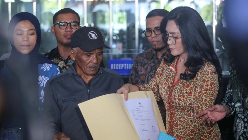 Dengan didampingi kuasa hukum dan Rieke Diah Pitaloka, ayah Dini Sera Afrianti diterima pihak administrasi Komisi Yudisial.