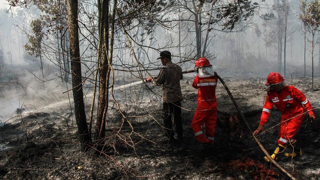 Potret Perjuangan Damkar Padamkan Kebakaran Lahan Gambut di Kalteng